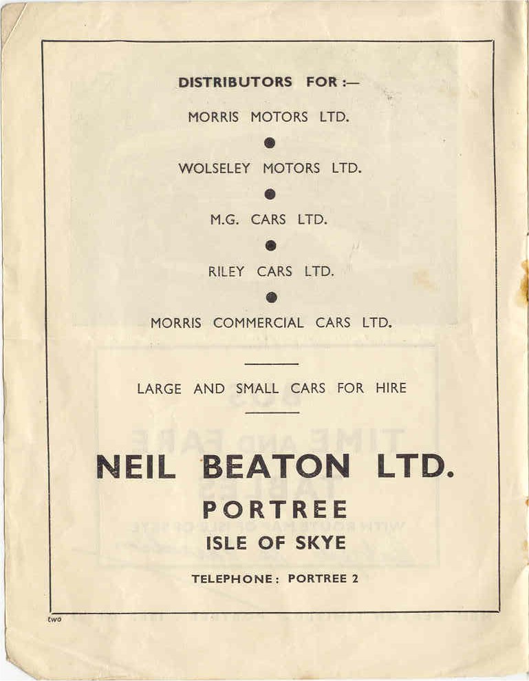 NEIL BEATON TIMETABLES Two complete timetables from this bygone bus operator on the Isle of Skye |